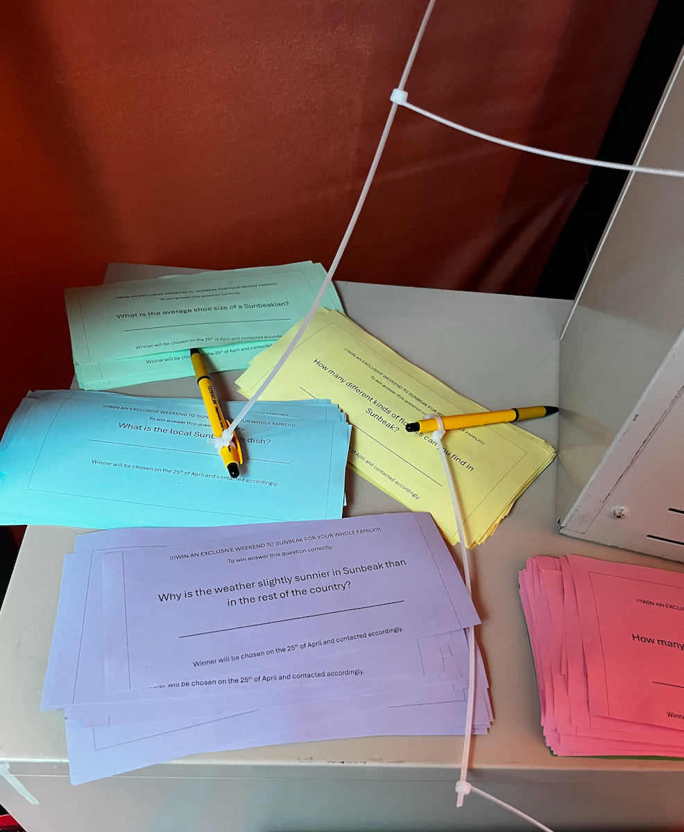 'Visit Sunbeak' is a performative installation seeking constant interaction with its audience. Why visit Bruges if you can visit the undiscovered Sunbeak?